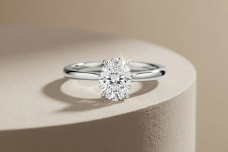Oval cut engagement rings use brilliant faceting similar to round diamonds, concealing inclusions through light dispersion and facet complexity.
