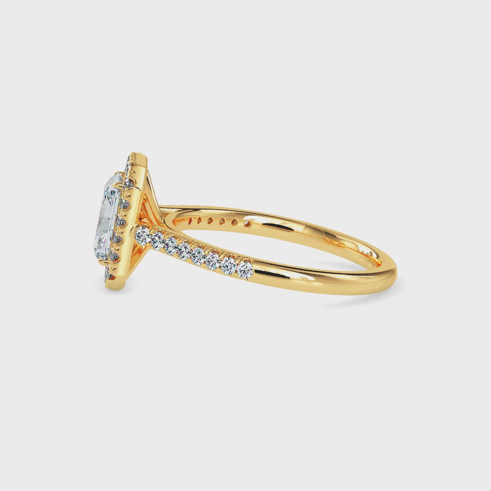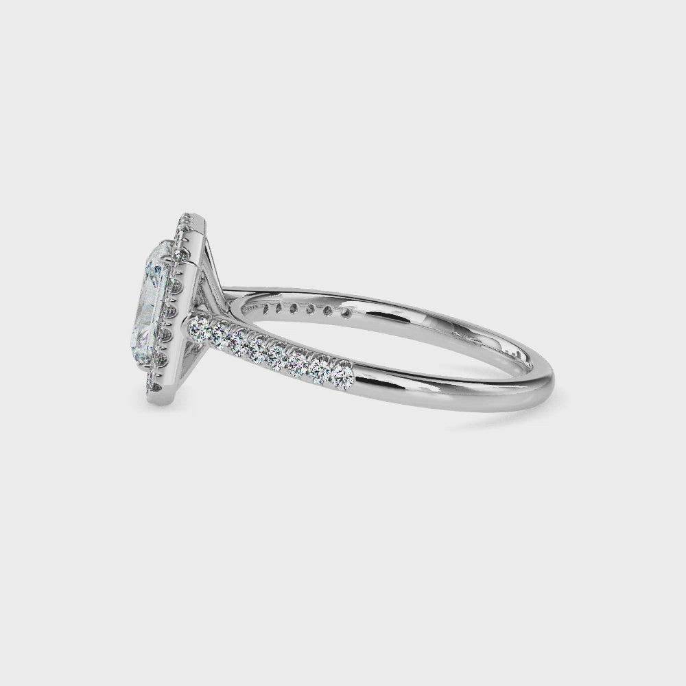 - Maud Solitaire Halo Pave Radiant Ring