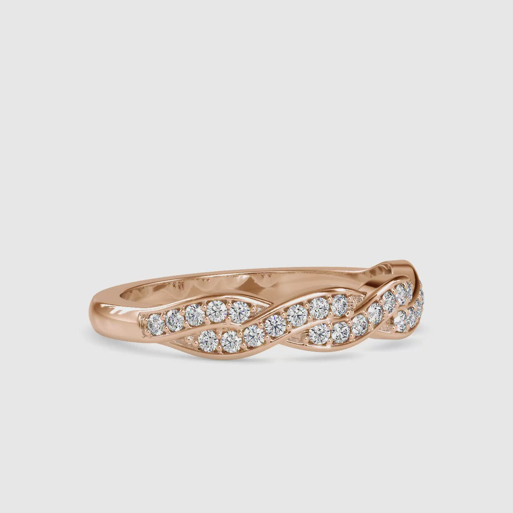 Przedstawiamy pierścionek Round Twirl Eternal Sparkle, fantazyjną obrączkę ślubną o wadze 3,72 g, która pięknie zdobi rząd lśniących okrągłych diamentów, emanując mieszanką młodzieńczego uroku i wyrafinowanej elegancji.