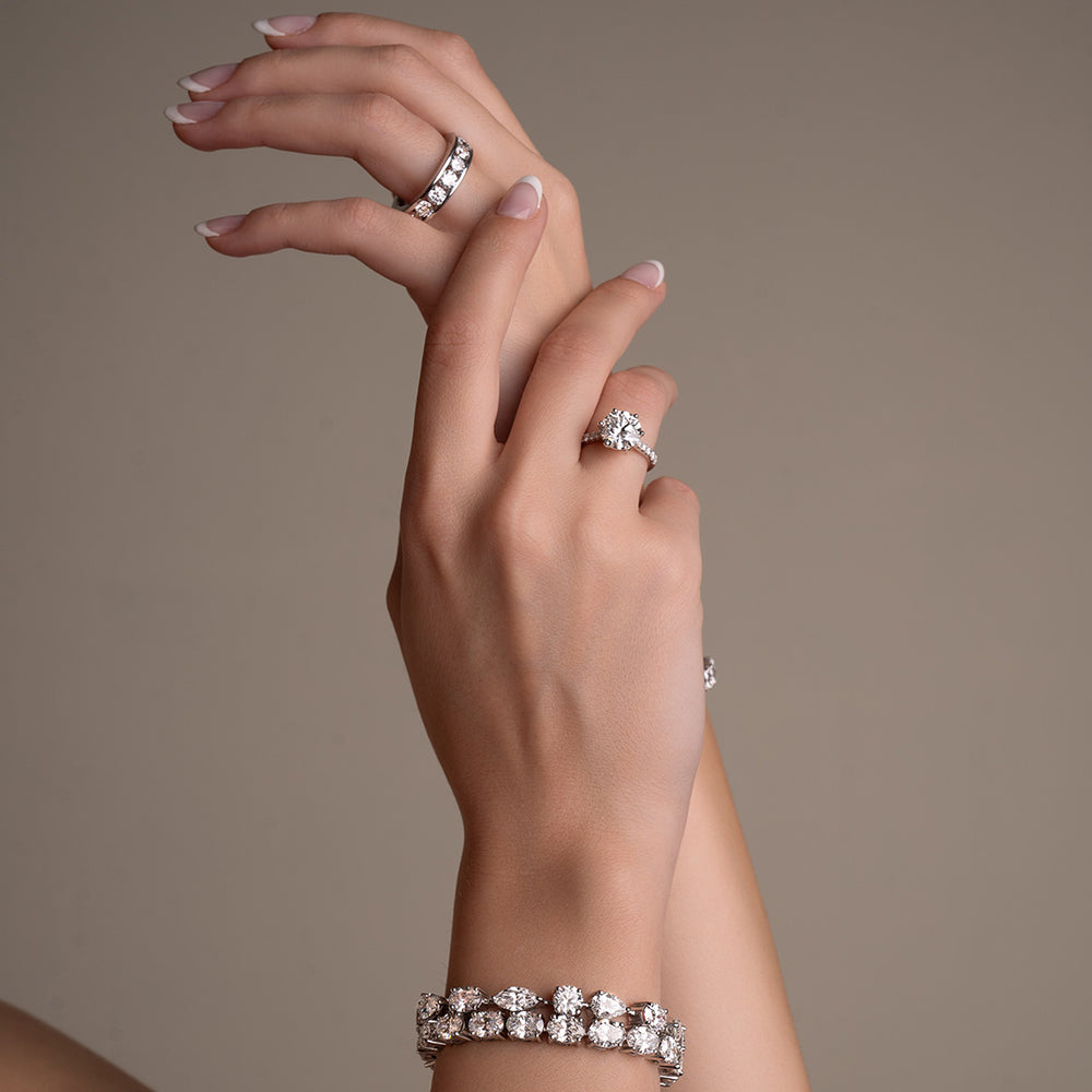 Ring proportion relative to finger width affects visual balance. Broader bands suit larger hands, whilst delicate settings complement smaller proportions.